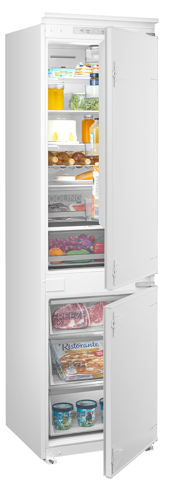 Специальная зона свежести предназначена для правильного и более длительного хранения овощей, фруктов, зелени. В ней поддерживается околонулевая температура, поэтому продукты не перемораживаются и не пересыхают.