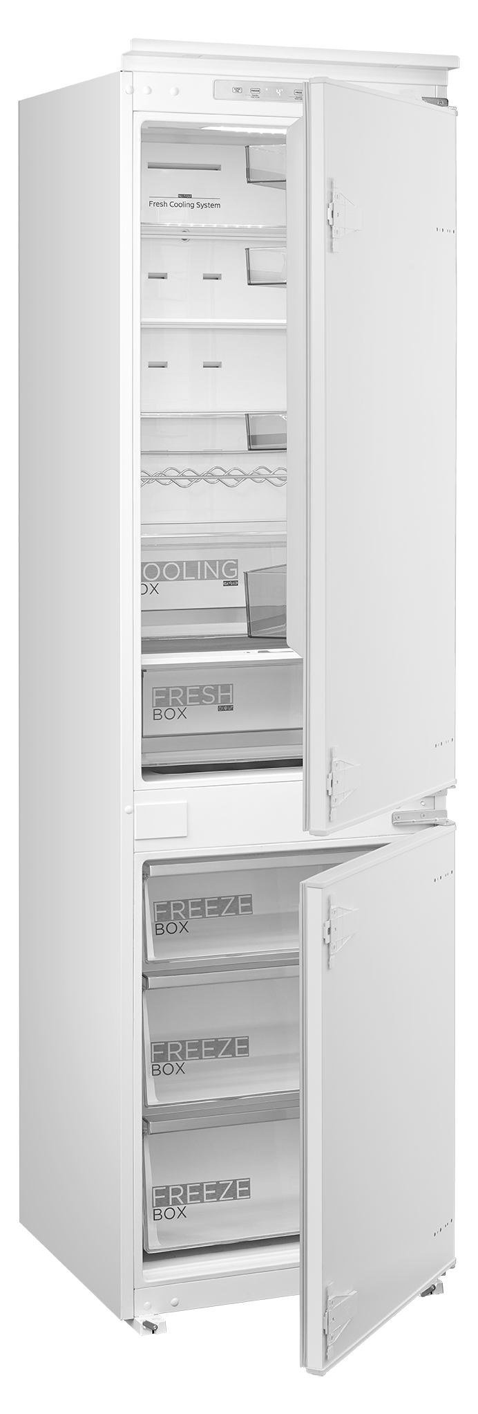 Трехкамерные модели выпускаются в нескольких вариантах. В некоторых случаях в качестве третьей камеры поступает так называемая зона свежести — отделение, где поддерживается температура около 0 градусов. В другом варианте подобные модели имеют морозильную камеру, состоящую из двух выдвижных ящиков.