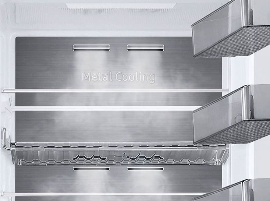 No Frost (Total No Frost, Frost Free): вентилятор обеспечивает циркуляцию охлажденного воздуха, благодаря чему лед не нарастает на стенке, а концентрируется только на скрытом внутри холодильника испарителе. Талая вода собирается в специальной емкости и испаряется. Такой холодильник не нужно размораживать – это экономит время и позволяет не останавливать прибор. Благодаря этим плюсам в современных моделях No Frost – самая распространенная система.