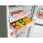 Вместительные контейнеры позволяют хранить достаточное количество овощей и фруктов. Для более длительного хранения и поддержания свежести овощей и фруктов разработаны специальные системы хранения. Среди них, например, зона свежести с увеличенной влажностью до 85% и температурой около 0 градусов. Это герметично закрывающийся ящик, часто на выдвижных роликах или направляющих, в котором имеется специальное задвижка, позволяющая регулировать влажность. Как известно, при более высокой влажности продукты с большим содержанием воды дольше остаются свежими.