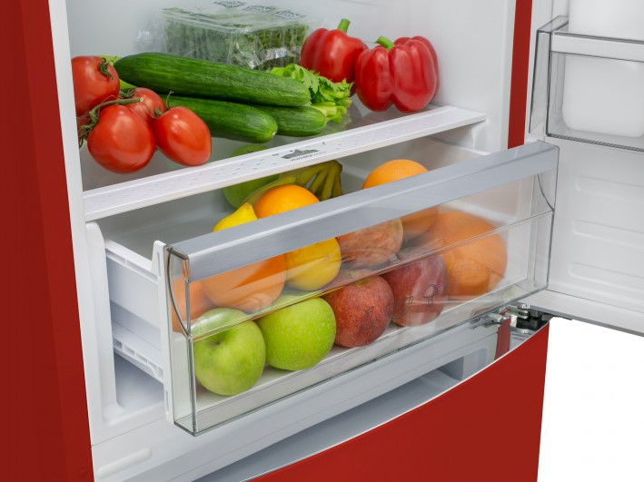 Вместительные контейнеры позволяют хранить достаточное количество овощей и фруктов. Для более длительного хранения и поддержания свежести овощей и фруктов разработаны специальные системы хранения. Среди них, например, зона свежести с увеличенной влажностью до 85% и температурой около 0 градусов. Это герметично закрывающийся ящик, часто на выдвижных роликах или направляющих, в котором имеется специальное задвижка, позволяющая регулировать влажность. Как известно, при более высокой влажности продукты с большим содержанием воды дольше остаются свежими.