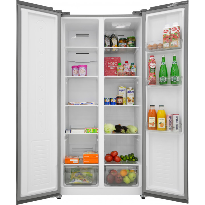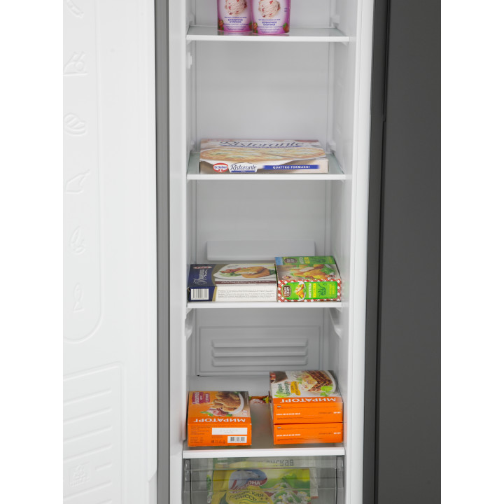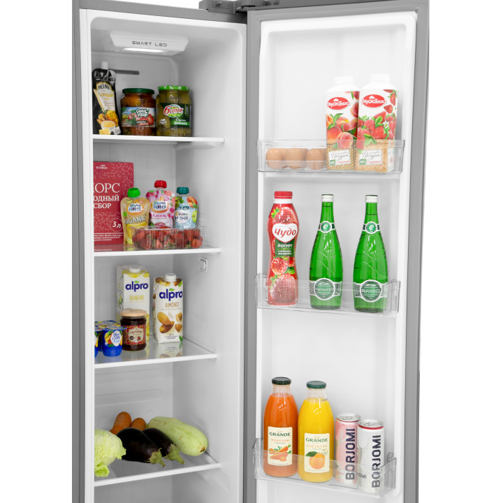Данная модель — отдельностоящая, поэтому нужно тщательно подобрать место для ее размещения. Холодильник Side-by-Side с необычным расположением камер — сбоку друг от друга — позволяет увеличить объем продуктов для хранения. Такой вариант подходит обладателям просторной кухни, большим семьям, людям, которые запасают продукты и готовят впрок. Количество камер: 2.