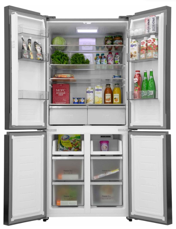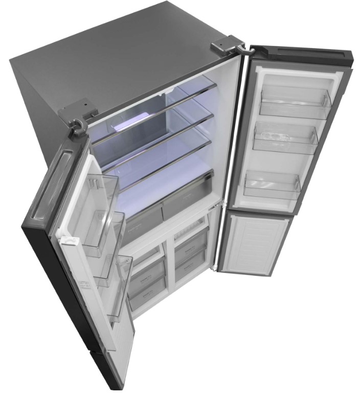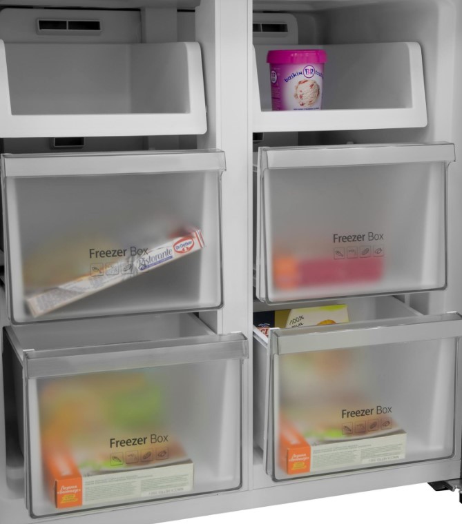 Трехкамерные модели выпускаются в нескольких вариантах. В некоторых случаях в качестве третьей камеры поступает так называемая зона свежести — отделение, где поддерживается температура около 0 градусов. В другом варианте подобные модели имеют морозильную камеру, состоящую из двух выдвижных ящиков.