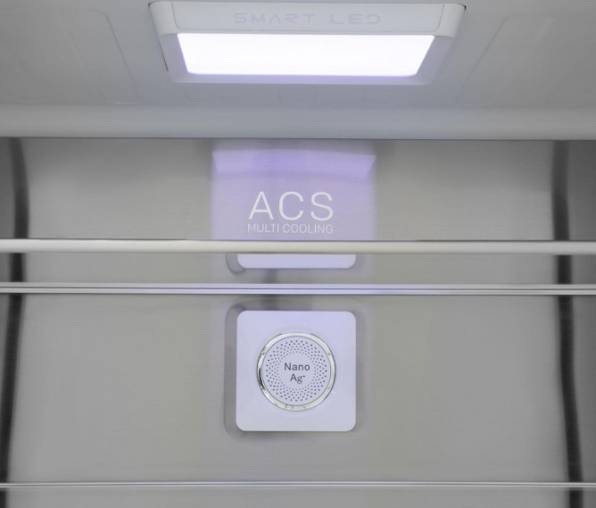 Антибактериальное покрытие в современных холодильниках позволяет избавиться от неприятного запаха в камере, увеличивает срок хранения и поддерживает свежесть продуктов. Как правило, оно наносится на внутреннюю поверхность камеры и представляет собой максимально тонкое полимерное защитное напыление, имеющее в своем составе соединения серебра. Положительно заряженные ионы серебра отличаются противомикробными и антисептическими свойствами. Эти ионы постоянно высвобождаются при контакте покрытия с влажным воздухом в камере, предотвращая тем самым распространение колоний бактерий, замедляя рост грибка и других болезнетворных микроорганизмов.