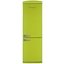 Двухкамерный холодильник в ретро-стиле яркого салатового оттенка. В обоих отделениях действует система No Frost, поэтому вам не нужно самостоятельно размораживать прибор. В верхней камере и на двери 8 полок из стекла, в морозильнике — три вместительных ящика.