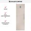 выглядит солидно и сдержанно: вертикальный отдельно стоящий морозильник в отделке «бежевый мрамор», высотой 186 см и с габаритами 186×59.5×65 см. Одностворчатая дверь с левым упором придаёт корпусу ясную геометрию, а дверца украшена встроенным цифровым дисплеем — элементы управления расположены на наружной панели, что упрощает доступ к настройкам. Общий вид этого агрегата подчёркивает монолитность и продуманную высотную планировку, которая видна сразу при взгляде на фасад.