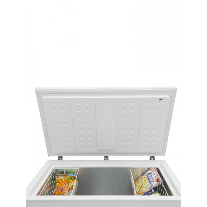 Внутренняя камера морозильного ларя, как правило, не содержит полок, ящиков и других подобных разделителей — это большой цельный отсек, в котором сверху могут крепиться металлические сетчатые корзины. Такая конструкция позволяет максимально увеличить вместительность устройства.