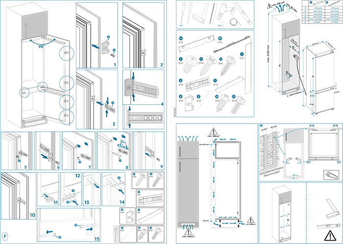 Встраиваемый прибор проще разместить в комнате, даже если общий метраж не такой уж большой. Вы можете спрятать его за декоративной панелью от мебельного фасада — советуем заранее определить нишу и заказывать панели исходя из типа крепления к двери. Способ монтажа в данной модели: скользящее крепление двери (система door sliding) Вы можете поменять направление открывания двери, так как упор переставляемый и ее можно перевесить на другую сторону. Такая функция открывает больше возможностей для установки. Холодильник с морозильником обладает всеми опциями, которые чаще всего ищут и выбирают покупатели. Стандартная конфигурация — универсальный вариант для любой квартиры. Количество камер: 2.