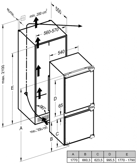 При всем сходстве с обычными отдельностоящими холодильниками частично встраиваемые модели имеют свои конструктивные особенности. Они связаны прежде всего с тем, что при встраивании необходимо обеспечить вентиляцию задней и боковых стенок, а также снизить уровень шума и вибраций. Как правило, проблема решается при помощи специальной системы вентиляции, когда вентиляционные решетки располагаются в нижней части корпуса холодильника.