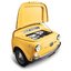 Оригинальный минибар Smeg 500G в корпусе ярко-желтого цвета относится к известной ретро-коллекции в стиле 50-х годов. Дизайн модели разработан совместно со специалистами компании Fiat и имеет вид передней части одноименного автомобиля. Общий объем 100 литров позволяет поместить для охлаждения достаточное количество напитков, предусмотрено также отделение для хранения масла и сыра и полка для жестяных банок. Регулируемый термостат поможет установить необходимый температурный режим.