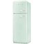 Двухкамерный холодильник пастельного зеленого цвета в стиле 50-х годов станет изюминкой вашего интерьера. Морозильник расположен сверху, имеет два отсека, разделенных полкой. В холодильной камере полки из закаленного стекла (в том числе на двери), есть специальное отделение для бутылок.