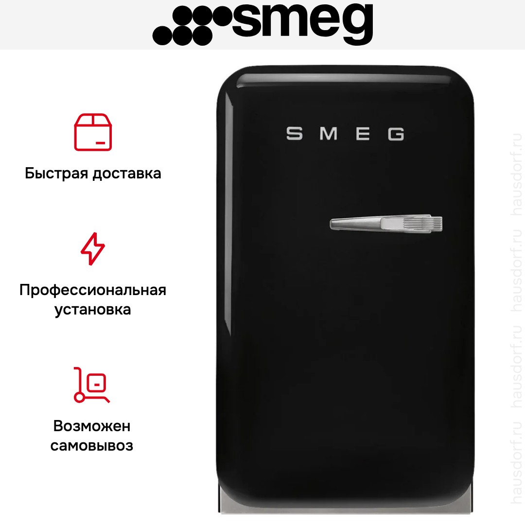 Мини-бар Smeg FAB5LBL6 — компактное и выразительное решение в стиле 50‑х годов для тех, кто ценит ретро‑эстетику и современную функциональность. Его лаконичная черная отделка и внешняя ручка создают заметный акцент в интерьере. Корпус высотой 74 см и шириной 40,4 см удобно размещается в небольшой кухне, гостиной или гостиничном номере. Глубина 50 см и 56,9 см с ручкой помогут правильно спланировать отступ от стены и дверной проем.
