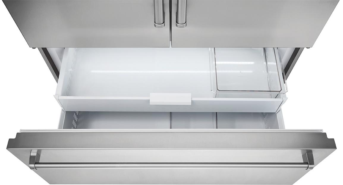 Трехкамерные модели выпускаются в нескольких вариантах. В некоторых случаях в качестве третьей камеры поступает так называемая зона свежести — отделение, где поддерживается температура около 0 градусов. В другом варианте подобные модели имеют морозильную камеру, состоящую из двух выдвижных ящиков.