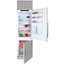 Встраиваемые холодильники монтируются в нишу или колонну. Передняя их часть закрывается декоративным мебельным фасадом и снаружи не отличается от дверцы обычного кухонного шкафа, так что их не нужно подбирать под интерьер помещения. Объем этих холодильников, как правило, несколько меньше, чем у отдельностоящих, так как при встраивании необходимо оставлять свободное пространство для вентиляции. Они отличаются меньшим уровнем шума, а также лучше держат холод и отличаются большей экономичностью из-за дополнительного слоя изоляции. Ассортимент этих холодильников не так велик, как у отдельно стоящих, установка более трудоемкая, а стоимость обычно несколько выше.