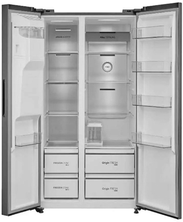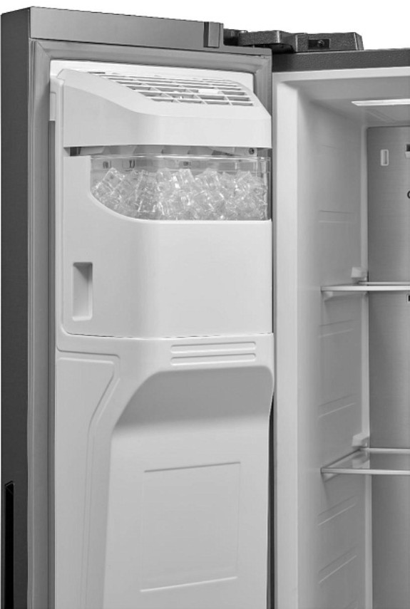 - Бок‑о‑бок компоновка и полезный объём 582 л — много места для продуктов и удобная навигация по отделениям.
