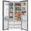 Гладкий корпус серого цвета и встроенные вертикальные ручки создают корректный, ненавязчивый образ, который легко впишется в нейтральную палитру кухни. Компактные габариты 177.5×91×69.8 см при расположении камер бок‑о‑бок делают агрегат заметным, но не бросающимся в глаза — он занимает много места по ширине при относительно небольших высоте и глубине, удобных для стандартных помещений. Двухдверная конструкция с углом открывания 127° и скрытыми ручками упрощает доступ к отделениям.