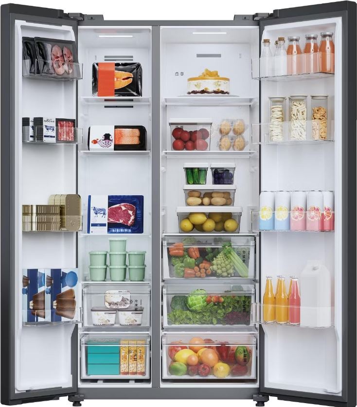 Холодильники Side-by-Side, что в переводе означает «бок-о-бок», — вместительные устройства, в которых холодильная и морозильная камеры располагаются рядом друг с другом. Они предназначаются для хранения значительного запаса продуктов и иногда называются холодильниками с американским типом компоновки, поскольку такие приборы с распашными дверями появились именно в США.