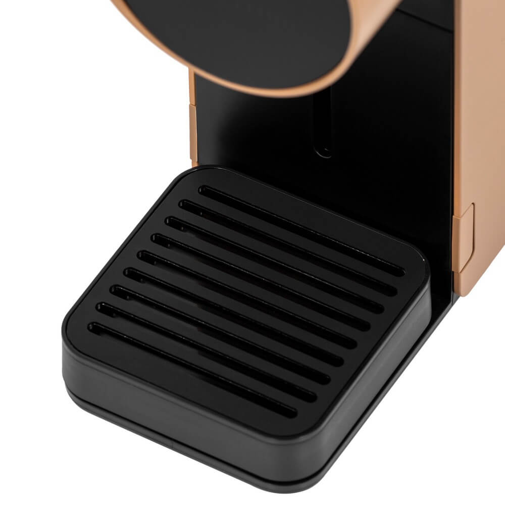 Благодаря миниатюрным габаритам — всего 23 см в высоту, 9,5 см в ширину и 35,5 см в глубину — прибор легко размещается даже на самой тесной кухонной поверхности, в офисе или на даче. Его узкий профиль делает технику идеальной для небольших пространств, где каждый сантиметр на счету. При этом конструкция остаётся устойчивой и эргономичной, а механизм подачи капсул продуман до мелочей для бесперебойной работы.