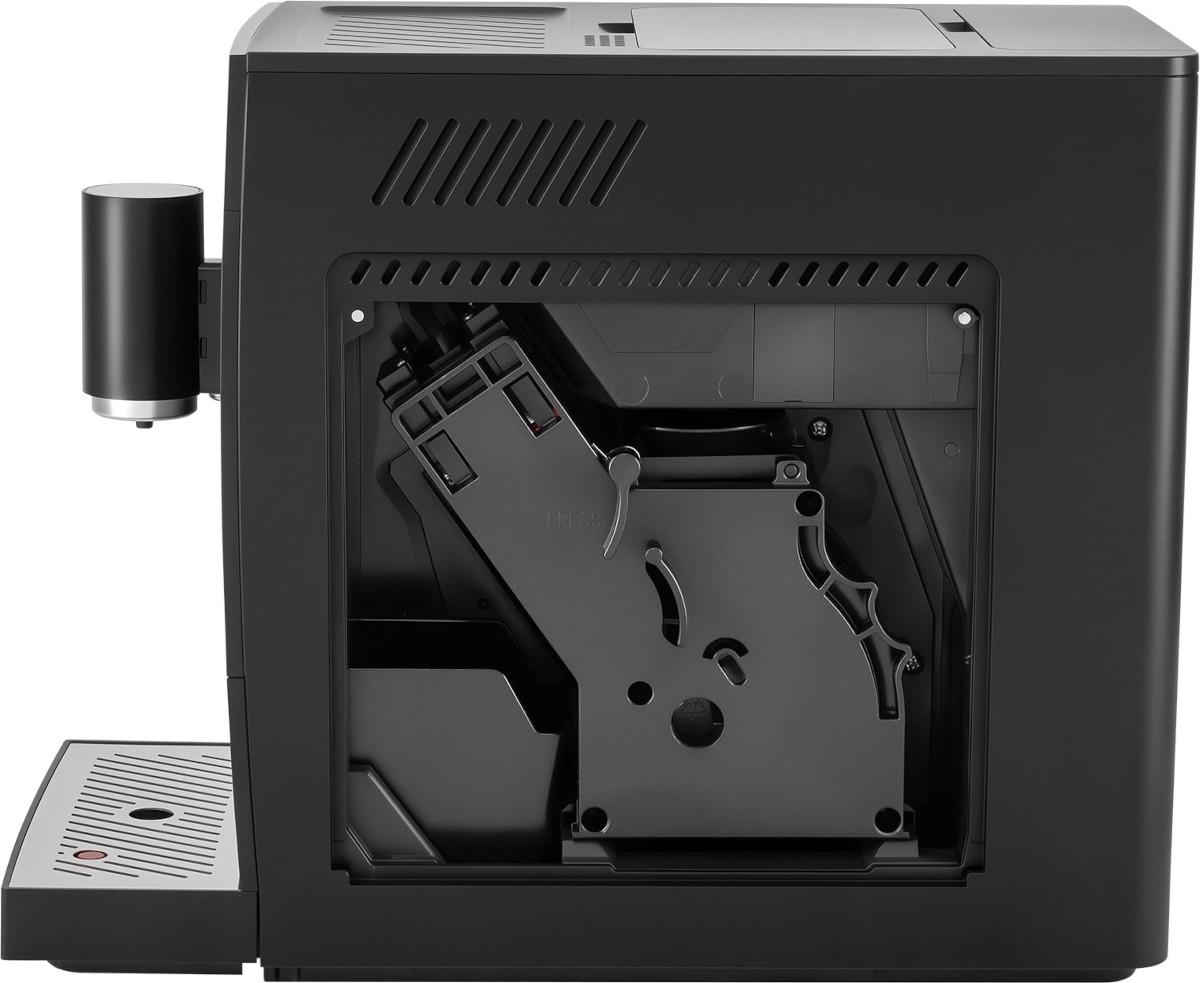 Визуальные характеристики кофемашины играют важную роль при выборе. Цвет корпуса этой модели — черный. Основной материал поверхности — пластик.