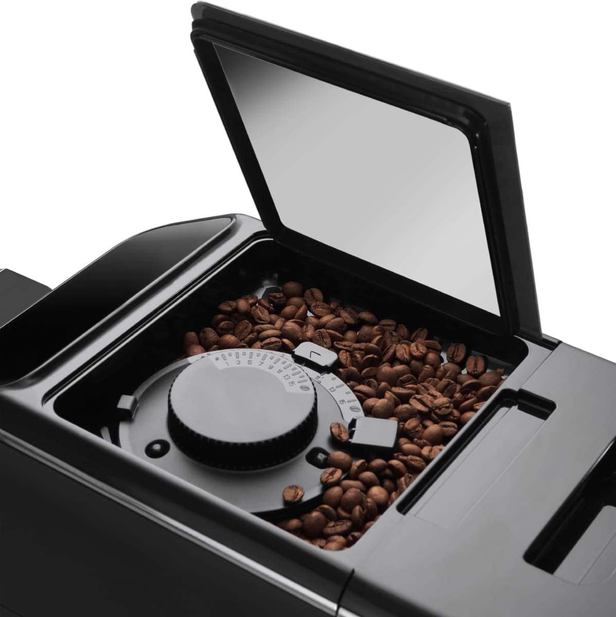Габариты устройства — 32 см в высоту, 19 см в ширину и 43 см в глубину — делают его одним из самых узких в своём классе, что особенно ценно для небольших кухонь, квартир-студий или офисных зон. Несмотря на компактность, внутри размещены все необходимые компоненты: встроенная кофемолка с регулировкой степени помола, контейнер для зёрен, отсек для молотого кофе и система подачи пара (при наличии), что обеспечивает полную автономность.