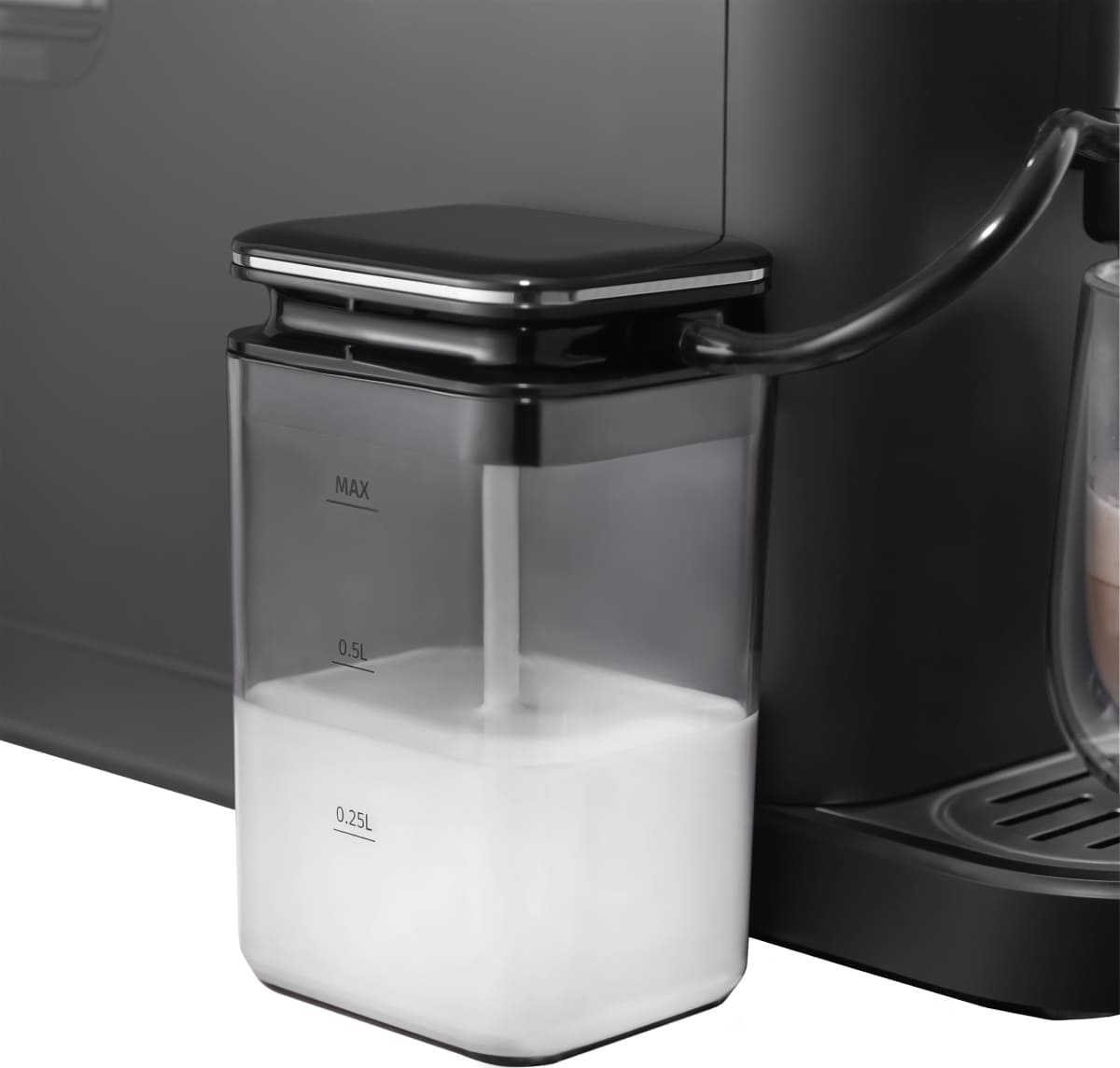 Съемный контейнер для молока в кофемашинах позволяет готовить латте или капучино, не боясь, что молоко испортится в стационарном резервуаре, а также гарантирует полностью автоматический процесс приготовления. Такой контейнер часто называют кувшином для молока благодаря характерной форме, удобной ручке и плотно прилегающей крышке. Контейнер можно легко извлечь сразу после приготовления напитка. Материал изготовления его — прозрачный экологически безопасный пластик. После извлечения контейнер можно хранить в холодильнике: как правило, использовать его следует в течение суток.