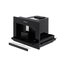 Телескопические направляющие в современных встраиваемых кофемашинах предназначаются для плавного, бесшумного и безопасного выдвижения устройства из ниши. У многих моделей емкости для кофейных зерен, молотого кофе и воды располагаются за фасадом прибора. В случае, если все эти контейнеры не являются съемными, телескопические направляющие позволяют быстро и без особых усилий выдвинуть всю конструкцию и зафиксировать ее в полностью выдвинутом положении, чтобы засыпать зерна или порошок кофе и залить воду. Там же, за фасадом, может находиться полочка для хранения и подогрева чашек.