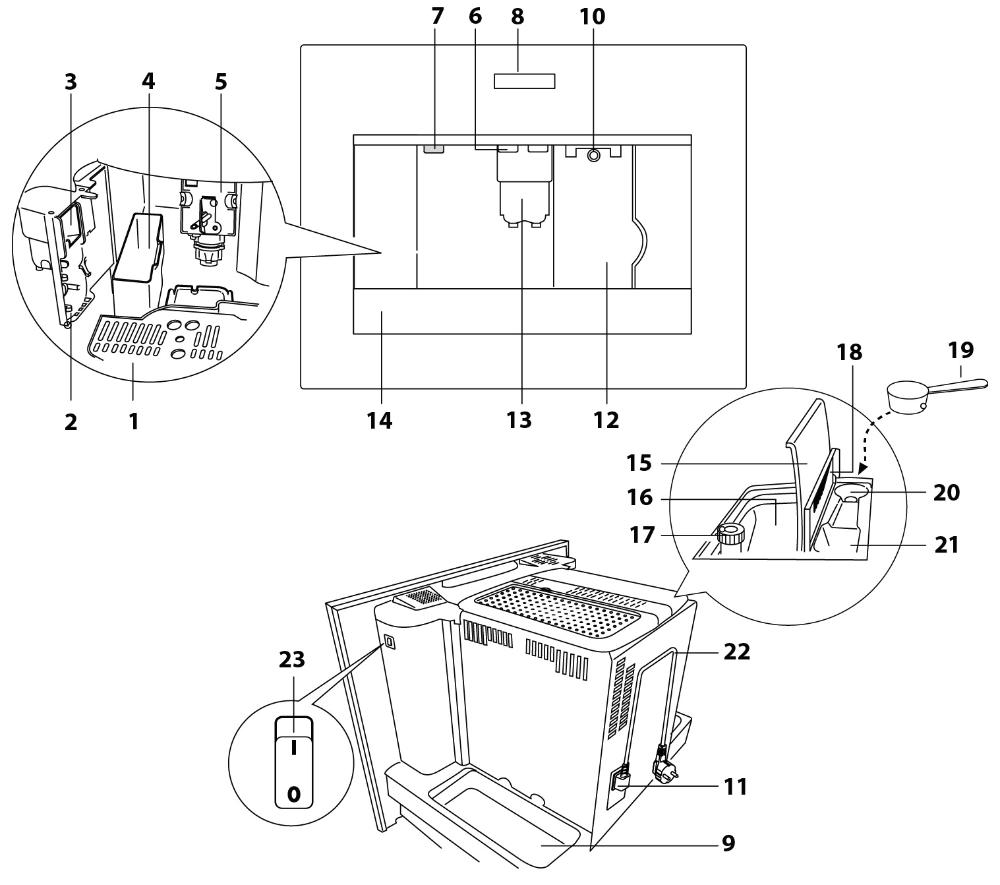 Съемный контейнер для воды во встраиваемых и отдельно стоящих кофемашинах — удобный аксессуар, позволяющий ускорить процесс приготовления напитков. Прозрачные контейнеры с легким доступом могут размещаться на фронтальной или верхней части машины. Для удобного извлечения они оснащаются ручками, залив воды производится через отверстие, которое можно закрыть плотной крышкой. Форма контейнера, как правило, прямоугольная, а материалом изготовления служит прозрачный безопасный пластик. Контейнеры могут оснащаться датчиком уровня воды для напоминания о необходимости их заполнения.