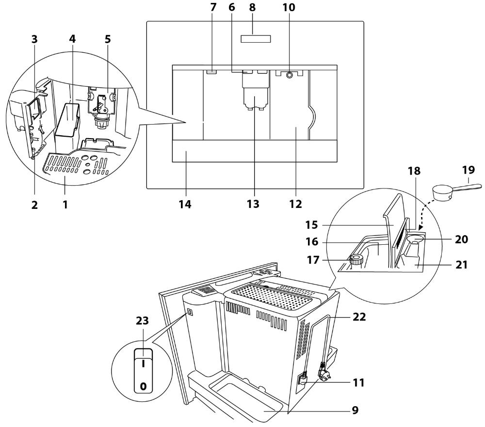 Дисплей в кофемашине позволяет быстро и без труда регулировать параметры работы и контролировать ход приготовления, подсказывает порядок действий и предоставляет возможность выбора вариантов управления при помощи меню. На экране отображается полная информация о состоянии устройства, визуализируется процесс приготовления, появляются предупреждения о том, что необходимо пополнить контейнеры для воды и зерен, а также выводятся сообщения об ошибках.