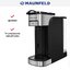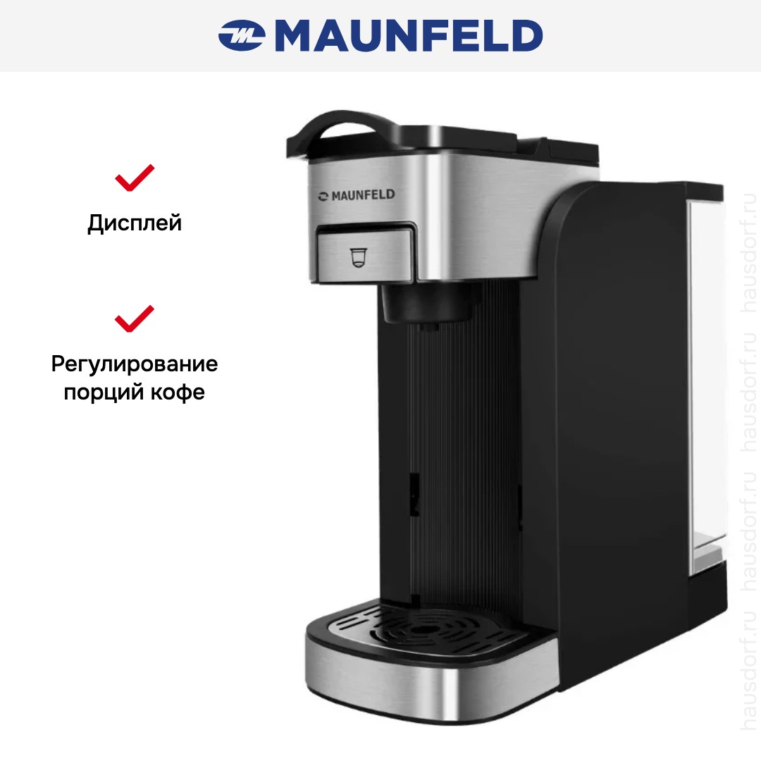 Капсульная Maunfeld MCCM-CM827BL представляет собой компактную кофемашину в строгом черном исполнении с корпусом из практичного пластика. Её габариты 30×13×32,5 см и вес около 3 кг делают аппарат удобным для установки на любой кухонной поверхности. Минималистичный дизайн дополняют сенсорные органы управления и аккуратный дисплей, что придаёт прибору современный и лаконичный внешний вид.