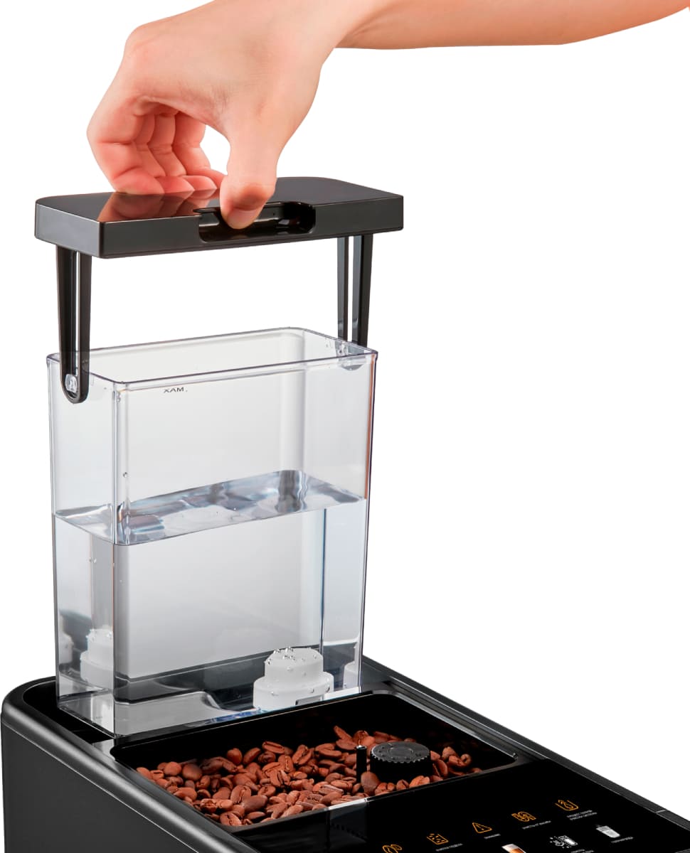 Съемный контейнер для воды во встраиваемых и отдельно стоящих кофемашинах — удобный аксессуар, позволяющий ускорить процесс приготовления напитков. Прозрачные контейнеры с легким доступом могут размещаться на фронтальной или верхней части машины. Для удобного извлечения они оснащаются ручками, залив воды производится через отверстие, которое можно закрыть плотной крышкой. Форма контейнера, как правило, прямоугольная, а материалом изготовления служит прозрачный безопасный пластик. Контейнеры могут оснащаться датчиком уровня воды для напоминания о необходимости их заполнения.