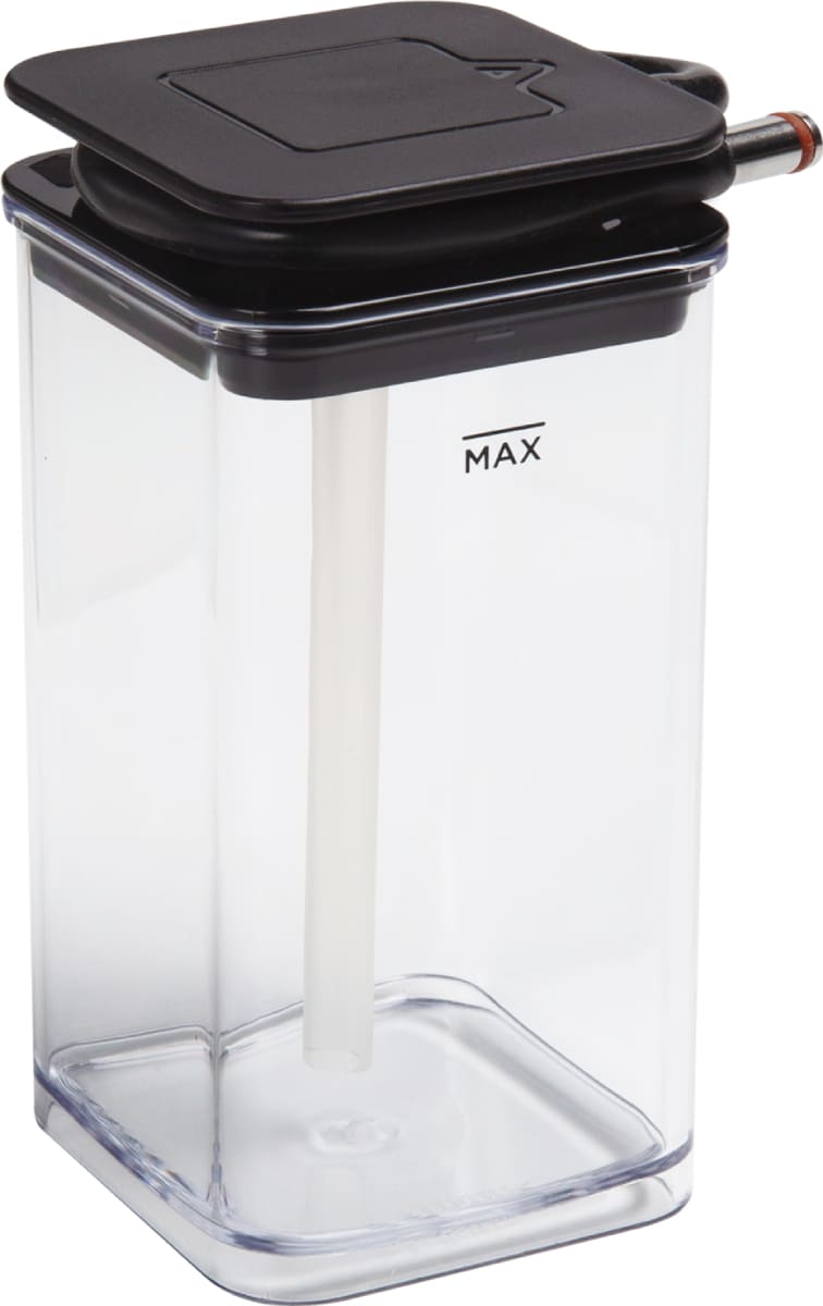Съемный контейнер для молока в кофемашинах позволяет готовить латте или капучино, не боясь, что молоко испортится в стационарном резервуаре, а также гарантирует полностью автоматический процесс приготовления. Такой контейнер часто называют кувшином для молока благодаря характерной форме, удобной ручке и плотно прилегающей крышке. Контейнер можно легко извлечь сразу после приготовления напитка. Материал изготовления его — прозрачный экологически безопасный пластик. После извлечения контейнер можно хранить в холодильнике: как правило, использовать его следует в течение суток.