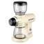 - Конструкция выполнена из литого металла, воронка для зерен и контейнер для молотого кофе — из прочного стекла, лезвия — из нержавеющей стали