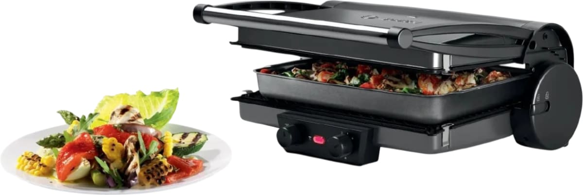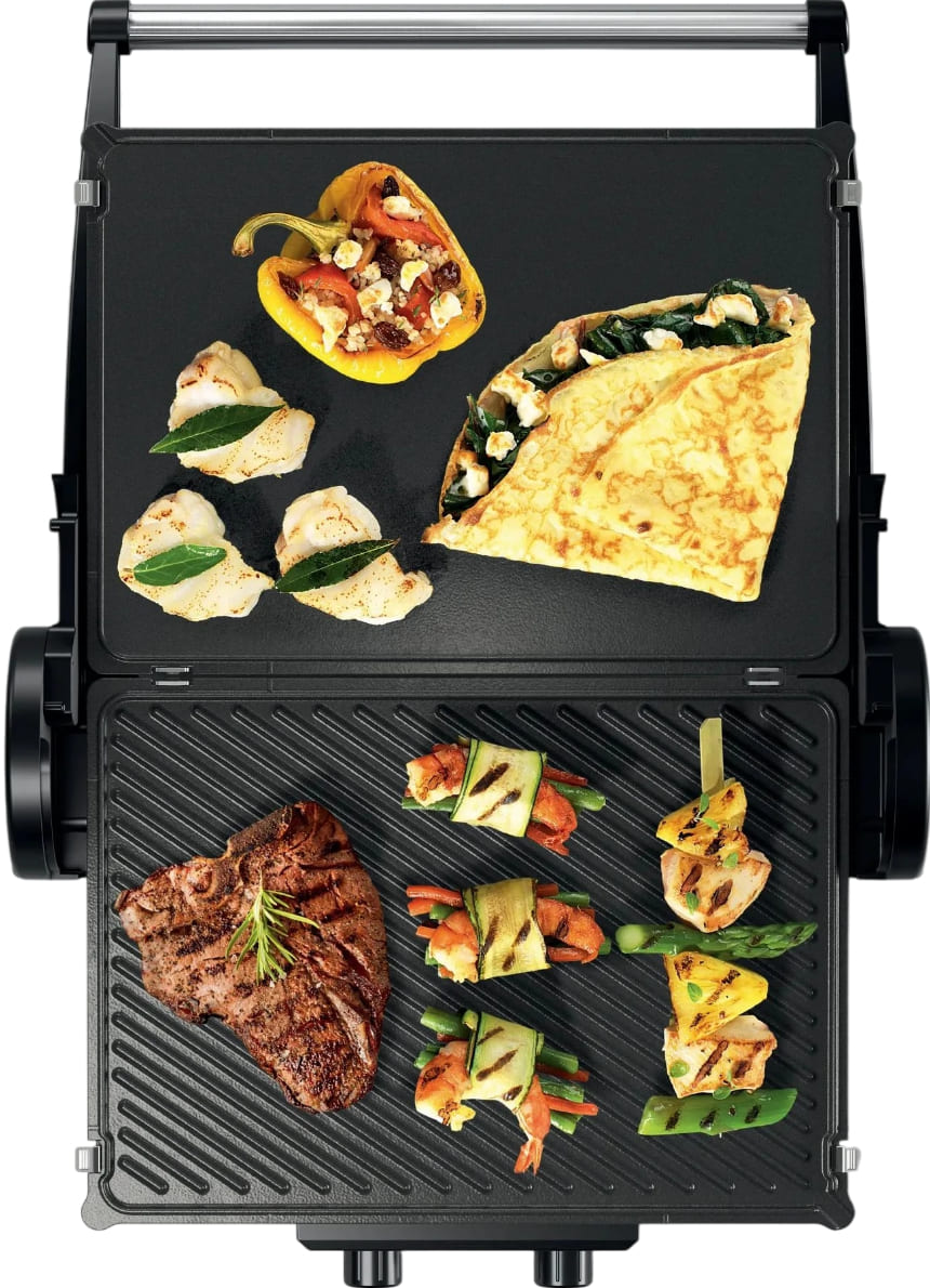 Гриль Bosch TCG4215 — компактное и мощное решение для приготовления ароматных блюд в домашних условиях без необходимости использовать открытый огонь или стационарную плиту. Это отдельностоящее электрическое устройство идеально подходит для кухонь, дач, офисов или квартир-студий, где важны мобильность, безопасность и функциональность. Благодаря миниатюрным габаритам — всего 11,5 × 40 × 33 см — прибор легко размещается на любой рабочей поверхности, не занимая много места, и при необходимости его можно быстро убрать или перенести.