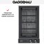 Общая ширина прибора — 29 см, высота — 12, 5 см, глубина — 51 см. Стандартные размеры и специальные соединительные планки черного или стального цвета позволяют встраивать гриль Гаггенау рядом с варочными поверхностями из серии Vario. Предусмотрено удобное крепление к столешнице накладным способом. Фронтальная механическая панель управления черного цвета оснащена двумя поворотными переключателями: они служат для выбора мощности нагрева передней и задней зон. Всего предусмотрено 9 уровней мощности. О том, что прибор включен, сигнализирует световое кольцо оранжевого цвета на каждом переключателе.