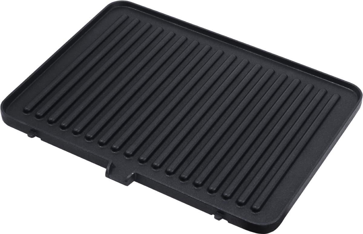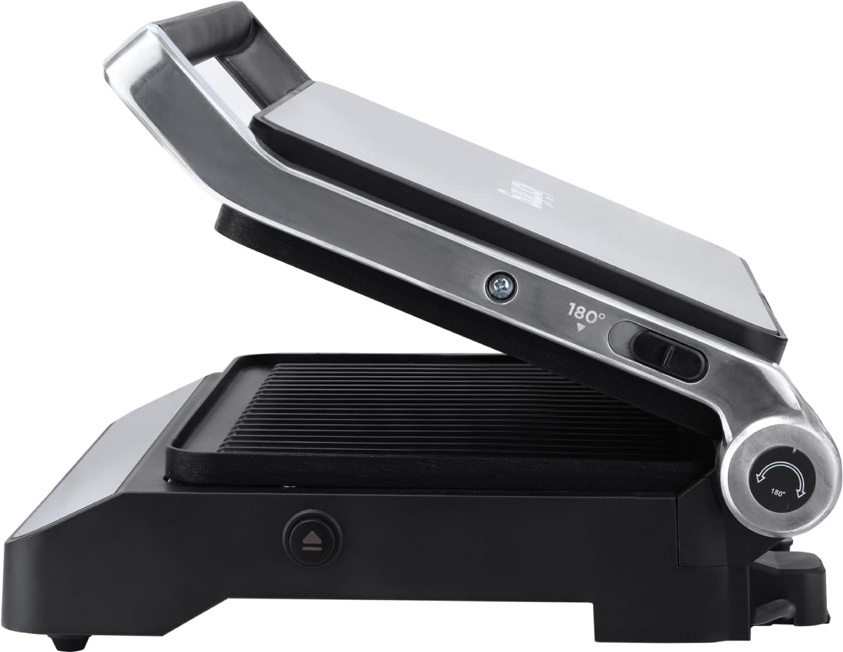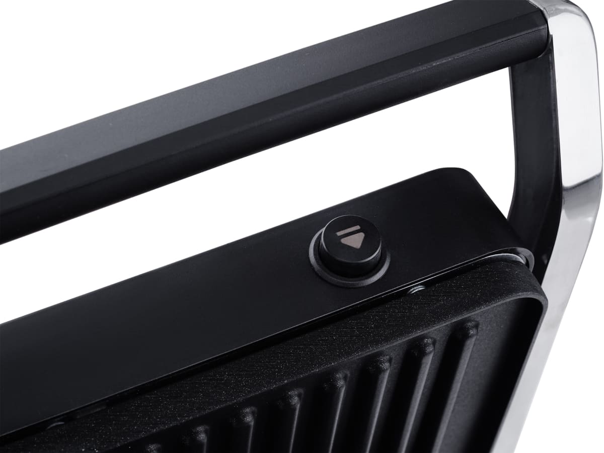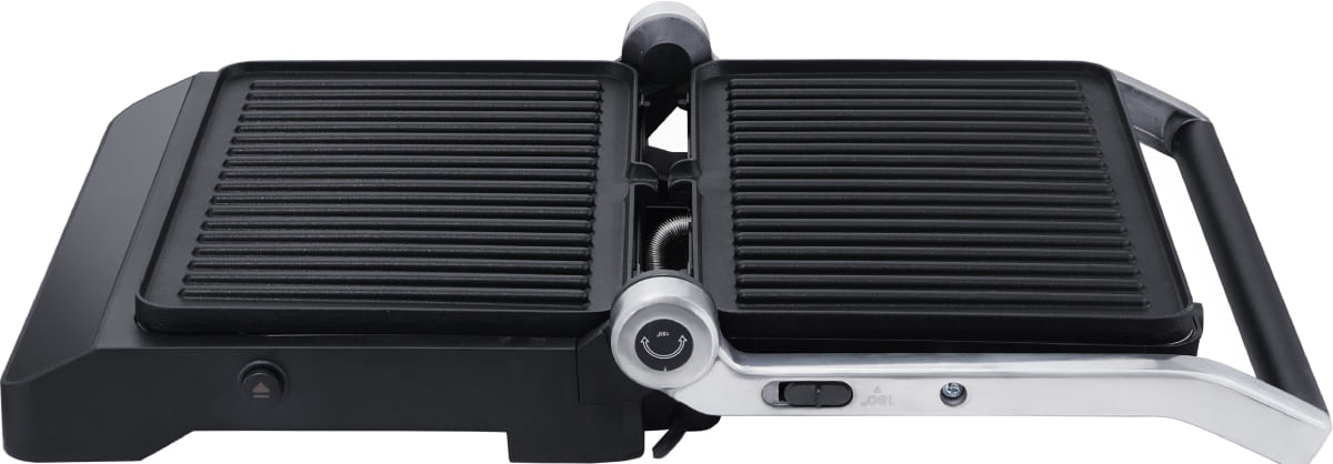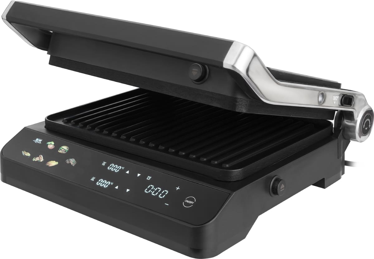 Рабочая зона представляет собой специализированную гриль-поверхность, обеспечивающую равномерное распределение тепла и эффективное обжаривание продуктов. Конструкция способствует естественному отведению излишков жира, что делает готовые блюда менее калорийными и более полезными для здоровья. Электропитание гарантирует быстрый разогрев, стабильную температуру и безопасность — без дыма, открытого пламени и необходимости в дополнительной вентиляции.