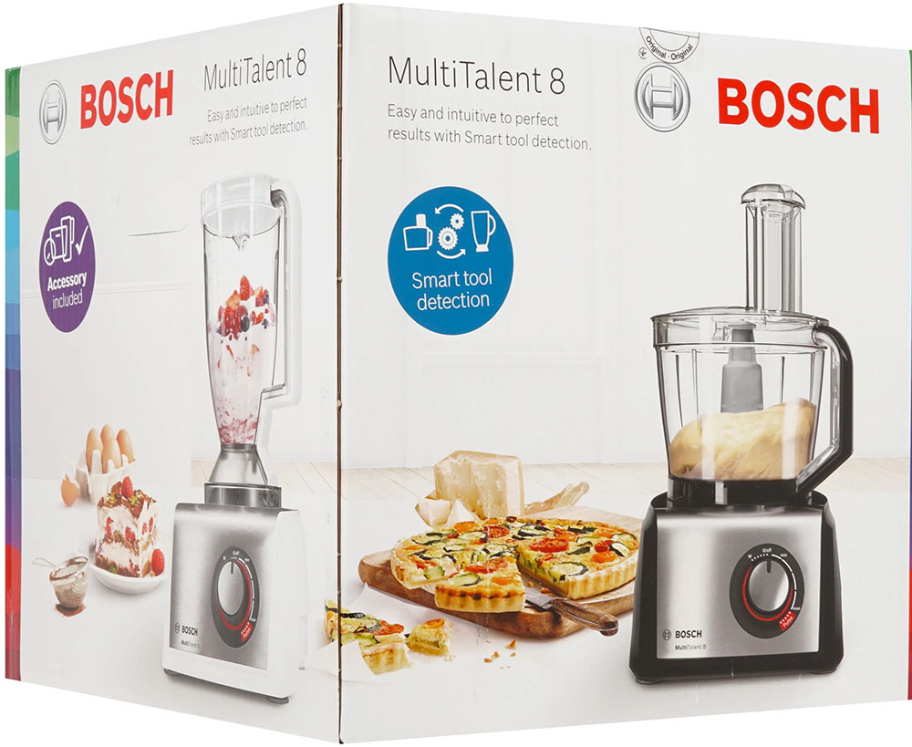 Кухонный комбайн Bosch MC812M865 — мощный и продуманный агрегат, созданный для тех, кто стремится к максимальной эффективности и комфорту на кухне. Сочетание строгого черно-серого оформления с современной эргономикой делает его не только функциональным, но и эстетичным элементом интерьера.
