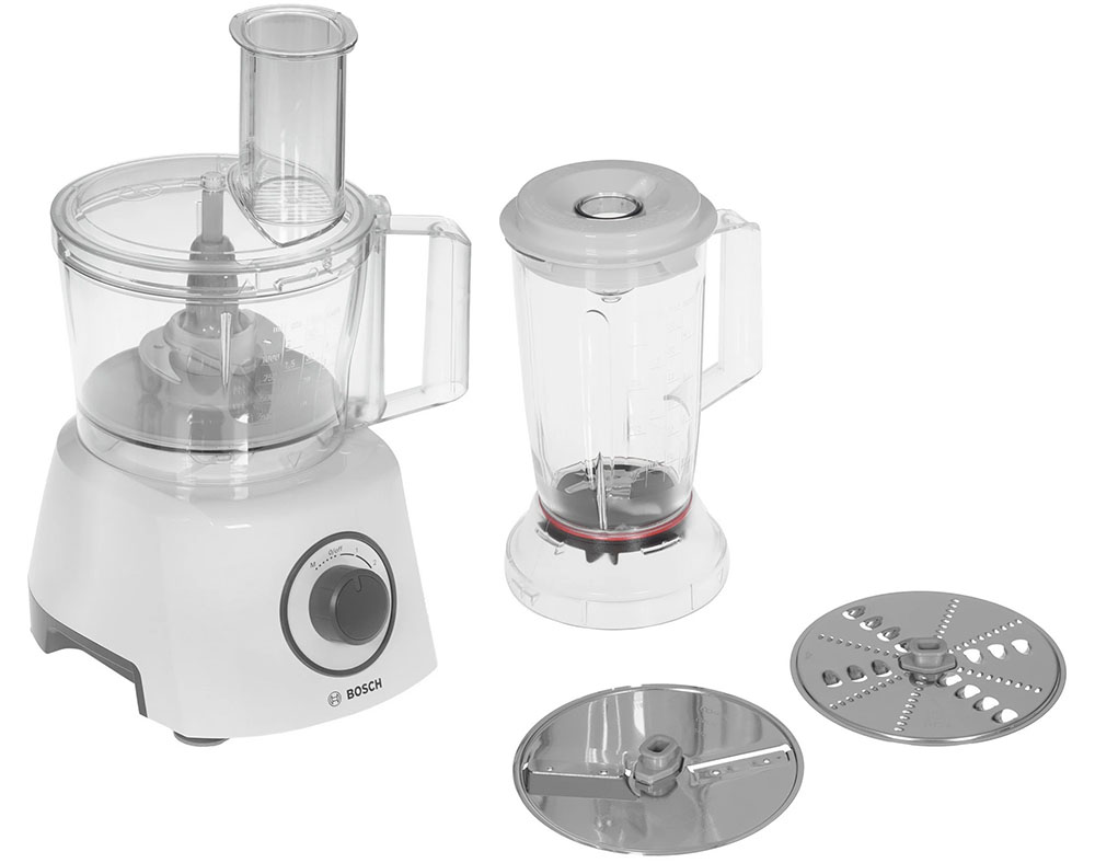 Кухонный комбайн MCM3200W отличается практичностью и функциональностью в использовании. Компактная модель позволяет хранить насадки внутри чаши, а вертикальная конструкция прибора экономит место. Диски из нержавеющей стали быстро и качественно измельчают продукты. Прорезиненные