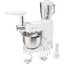 Аксессуары в комплекте: насадка-мясорубка с 2 дисками из нержавеющей стали (5 и 7 мм), насадка для приготовления колбас, насадка для приготовления кеббе, насадка-блендер