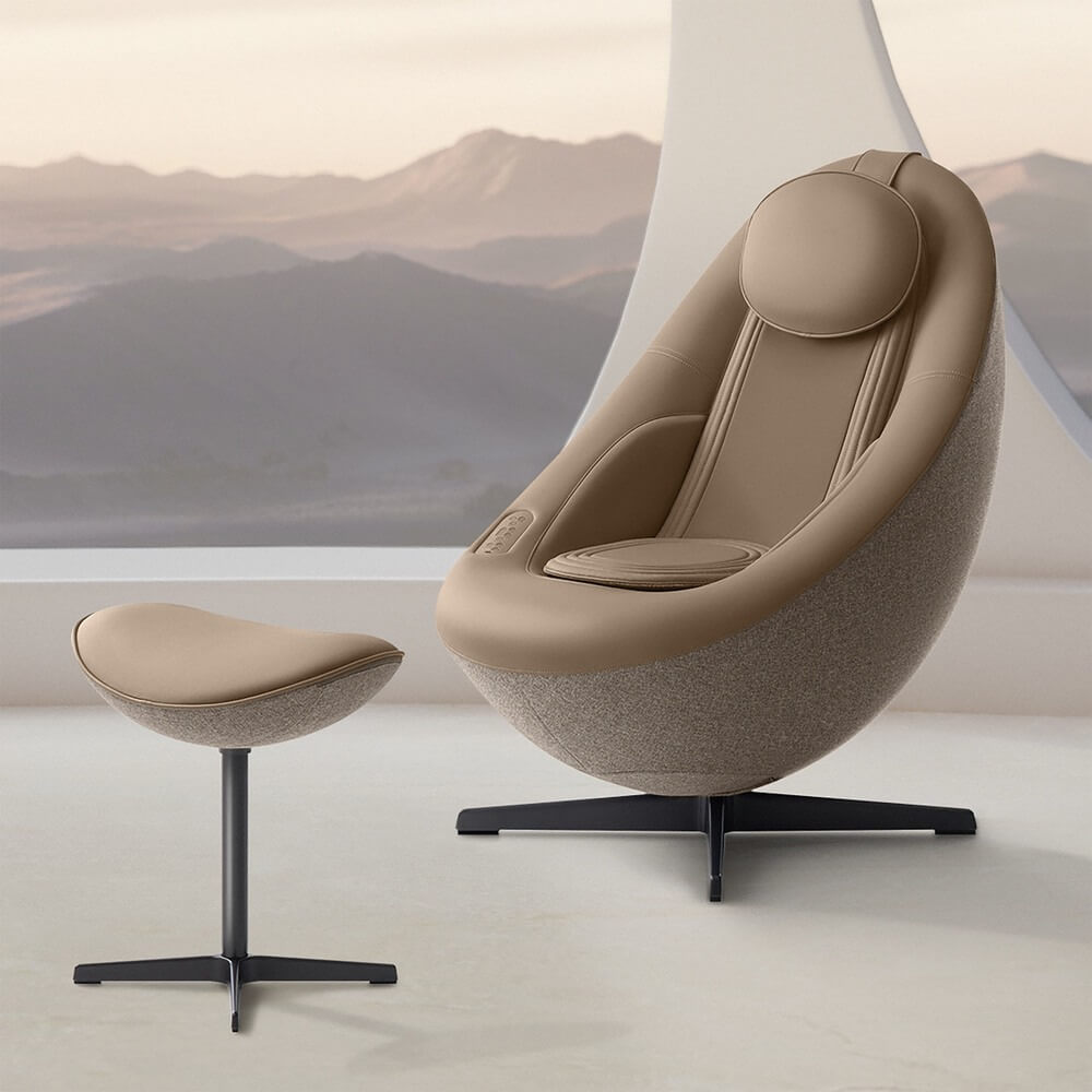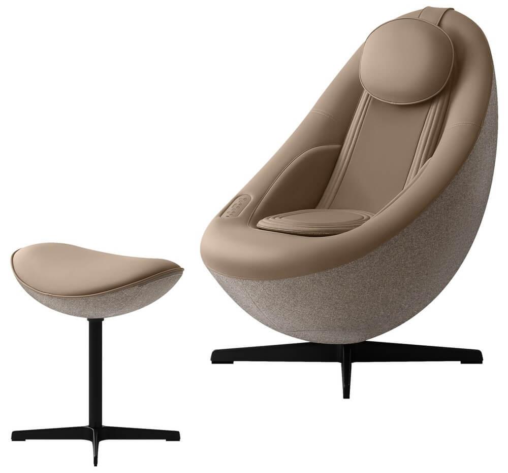 Массажное кресло выполнено в корейском интерьерном дизайне — оно идеально вписывается в обстановку. Удобная панель управления на подлокотнике с возможностью зарядки телефона и запуска музыки.