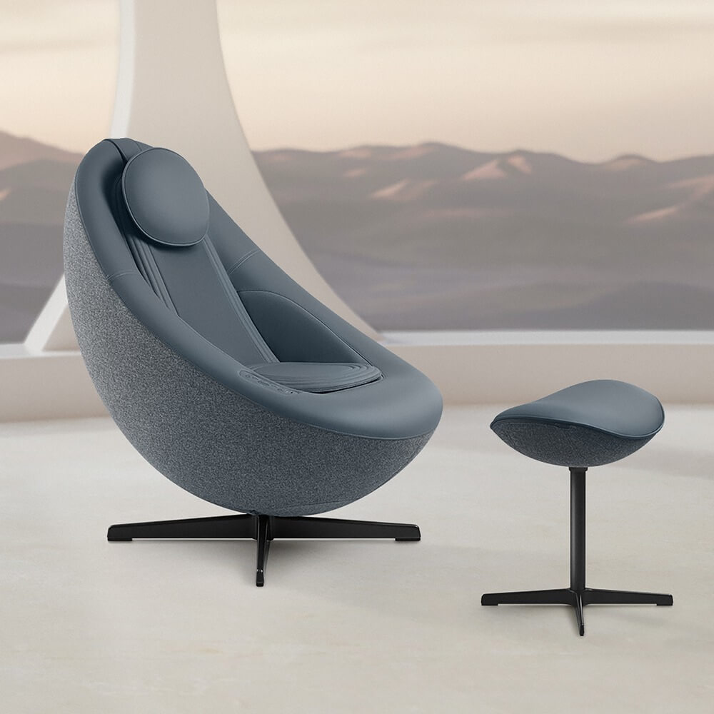 Массажное кресло выполнено в корейском интерьерном дизайне — оно идеально вписывается в обстановку. Удобная панель управления на подлокотнике с возможностью зарядки телефона и запуска музыки.