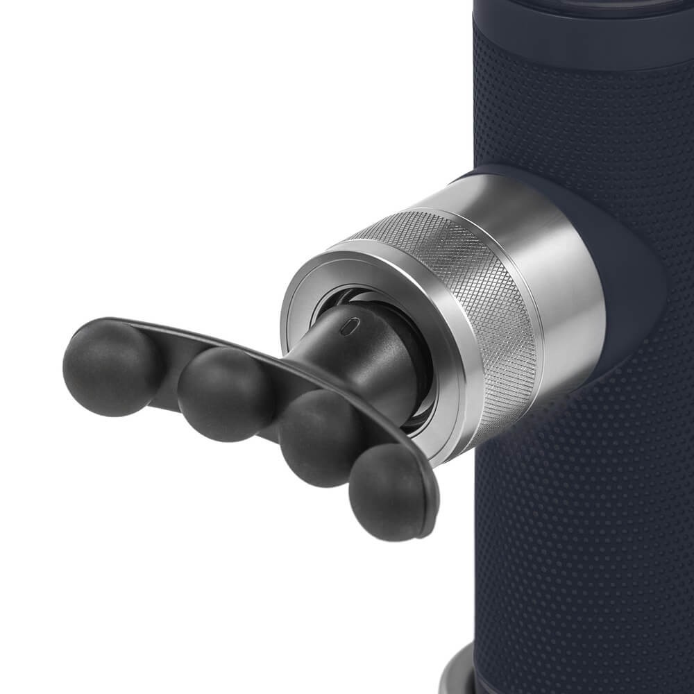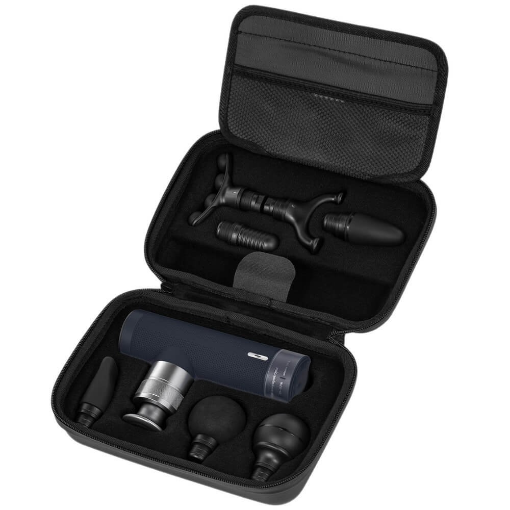 8 насадок: для плотных мышц, для триггерных точек, для стоп и кистей, для средних групп мышц, для мышц спины, для рук и бедер, для чувствительных частей тела, для всего тела