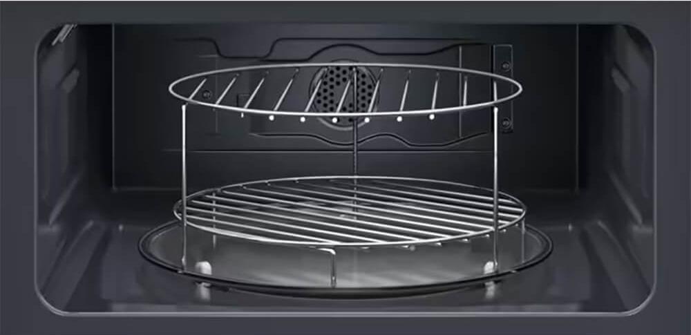 Количество уровней размещения блюд в СВЧ-печи определяется в первую очередь технологией генерации микроволн. В моделях с одним магнетроном и стеклянным поворотным столом пища размещается на одном уровне. Если в микроволновке предусмотрен гриль, блюдо можно разместить также на специальной подставке-решетке, которая устанавливается над стеклянным столом. В моделях без поворотного стола возможно размещение блюд на нескольких уровнях — от двух до пяти. Их количество зависит от объема камеры и от наличия дополнительных способов нагрева — например, гриля, конвекции, горячего воздуха или пара.