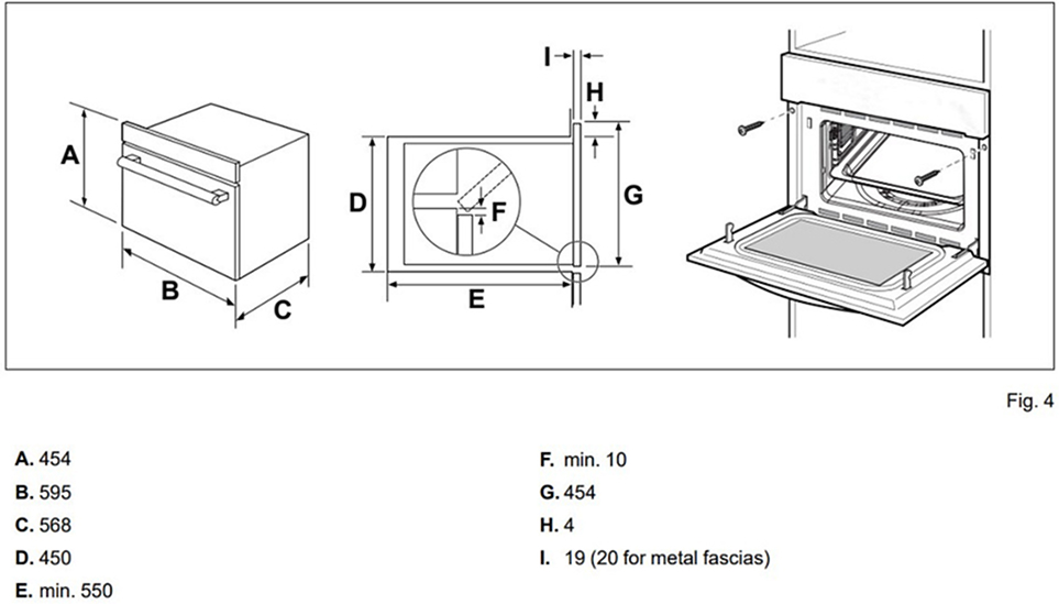 - Размеры ниши для встраивания (ВxШxГ): 44.8-45.2x56-56.8x55 cм