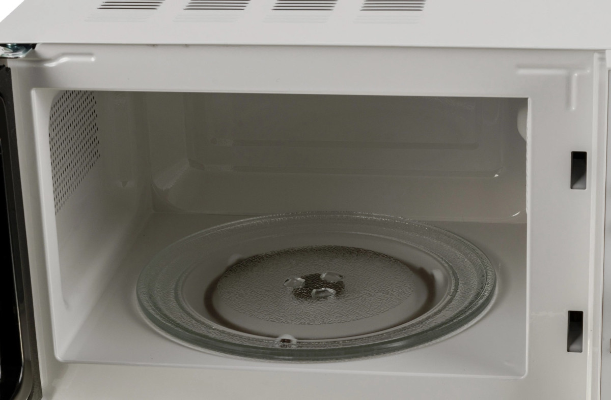 Вращающееся стеклянное блюдо в микроволновой печи позволяет микроволнам равномерно прогревать все блюдо. В большинстве печей магнетрон — источник электромагнитного излучения, — находится в нижней части корпуса или реже сбоку. Микроволны могут проникать в продукты как напрямую, так и отразившись от стенок и потолка камеры. Стеклянное блюдо, иногда называемое также поворотным столом или поддоном, устанавливается на вращающийся механизм с колесиками. Диаметр его зависит от объема камеры и может составить от 20 до 35 см. Размещать на нем можно как одну, так и несколько форм с готовящейся пищей.