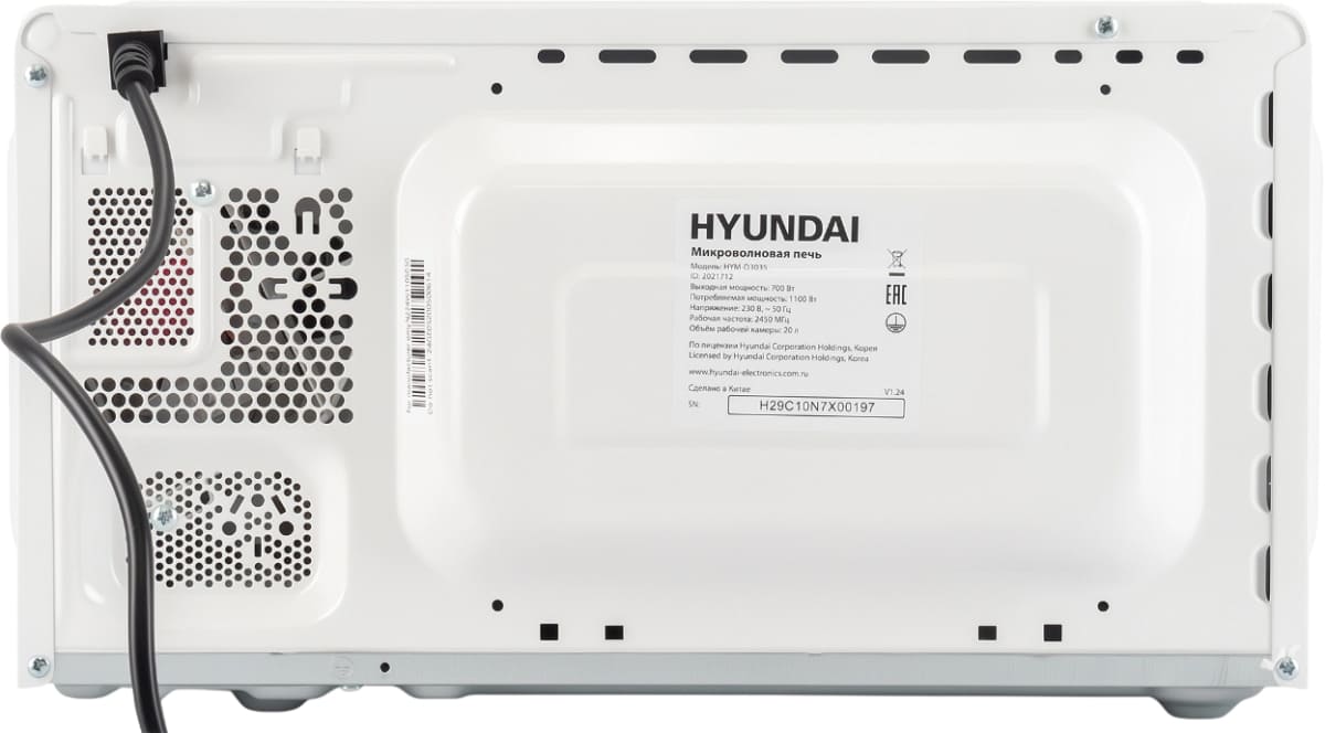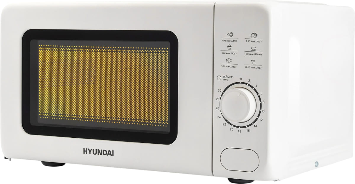 Количество режимов в данной модели Хендай: 2 шт. Для обработки продуктов и готовых блюд используются следующие виды нагрева: Микроволны. Отдельная опция для размораживания продуктов и полуфабрикатов облегчает жизнь — не нужно самостоятельно настраивать параметры.