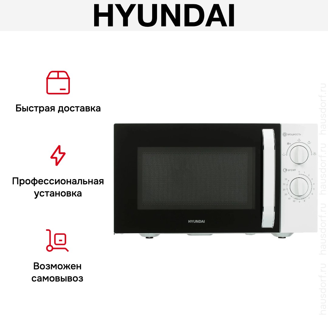 Отдельностоящая микроволновая печь Hyundai HYM-M2023 — компактное и полезное дополнение к уже имеющейся кухонной технике. Ее можно установить на шкаф, на свободную столешницу, но не рекомендуется ставить на другие приборы, например, холодильник. Цвет этой модели: белый.