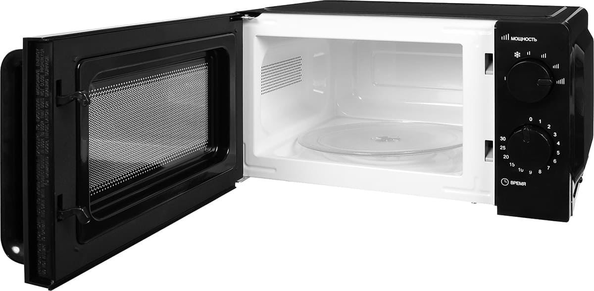 Материал внутренней поверхности — эмаль. Это самое распространенное покрытие, так как оно зарекомендовало себя высоким качеством, устойчивостью к механическим воздействиям и простотой ухода. Полезный объем для готовки — 20 л. Для установки и прогрева посуды используется классическое вращающееся блюдо. Стандартное механическое управление не вызовет трудностей ни у кого из вашей семьи. Для изменения настроек или выбора программ используются следующие переключатели: поворотные.