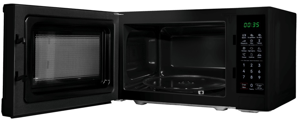 Конвекционный вентилятор устанавливается в микроволновках без поворотного стола: равномерное распределение горячего воздуха позволяет размещать в камере сразу несколько блюд. Комбинация вентилятора и верхнего гриля называется турбогрилем: этот режим очень хорош для выпечки больших пирогов и кексов. Сочетание гриля и конвекции подойдет и для приготовления больших кусков мяса или целой птицы и рыбы. Добавление традиционного нижнего нагревательного элемента превращает микроволновую печь в аналог полноценной духовки: с ее помощью можно готовить, разогревать и размораживать, запекать и томить, обжаривать и тушить.