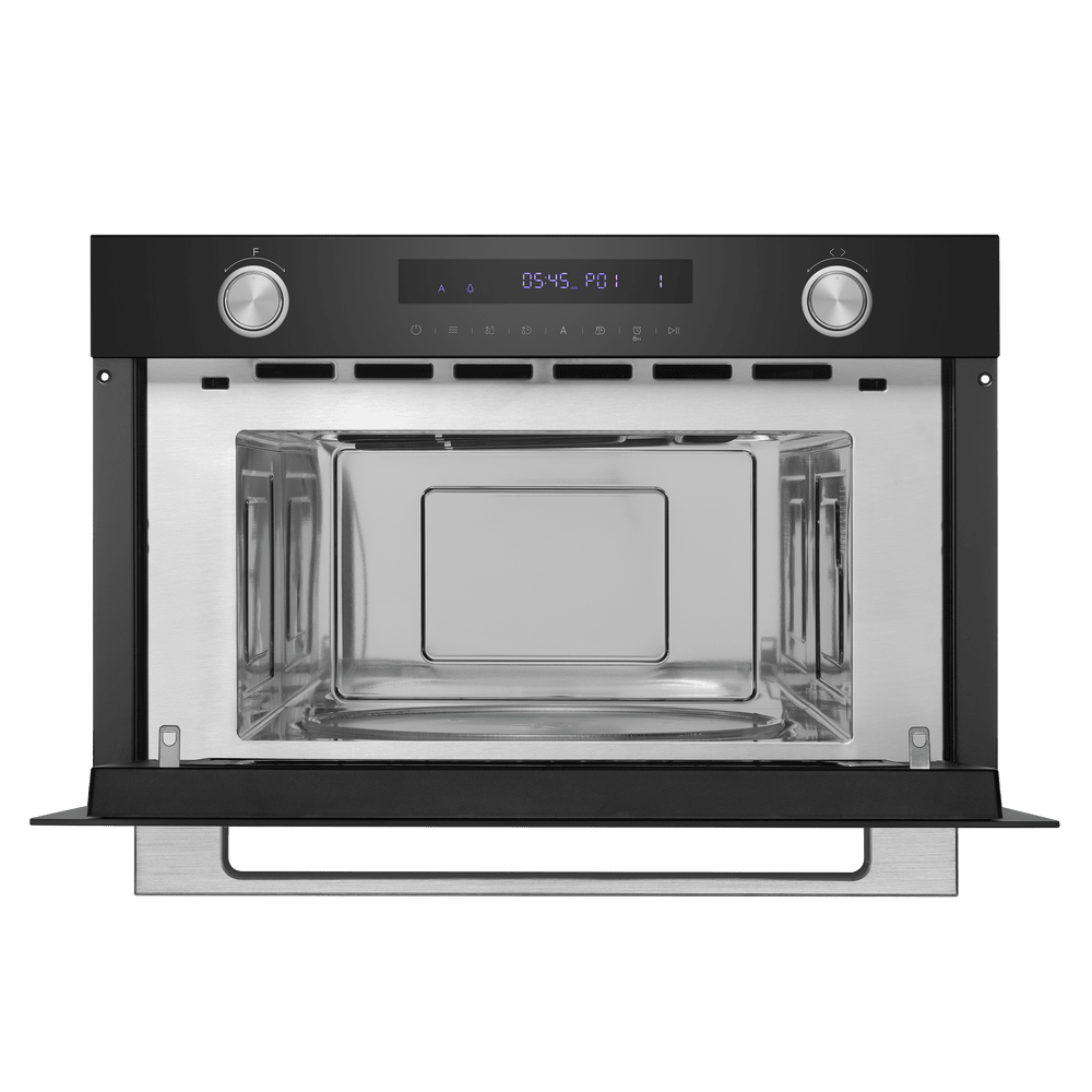 Глубина микроволновой печи —параметр, наиболее сильно влияющий на объем камеры и на диаметр вращающегося стеклянного блюда. Отдельно стоящие микроволновки соло, а также приборы, оснащенные грилем, имеют глубину от 35 до 45 см. При их установке на столешнице следует учитывать, в какую сторону и насколько широко будет открываться дверца. Глубина микроволновки, которая встраивается в кухонную мебель, также варьируется в широком диапазоне. Для полноразмерных моделей с откидной или навесной дверцей она может составить около 52-55 см, а для менее вместительных приборов — порядка 32-35 см.