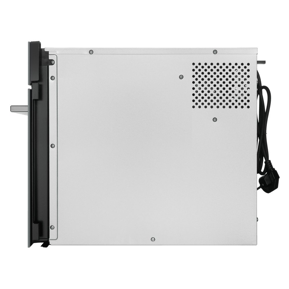 Микроволновые печи могут иметь навесную или откидную дверцу. Модели с навесной дверцей, запирающейся на механические защелки, могут быть как встраиваемыми, так и отдельно стоящими. Такие СВЧ-печи с дверцей, открывающейся влево или вправо, могут относиться к любой категории цен: от самых простых и дешевых до премиальных моделей. Недостатки дверцы с петлями сбоку — выступающая ручка, которая затрудняет очистку фасада, и небольшой угол открытия не более 90 градусов, который может препятствовать, например, размещению прибора в углу. Если ручка действительно мешает, стоит выбрать модель, дверца которой открывается нажатием на кнопку или прикосновением к сенсору на боковой панели управления.